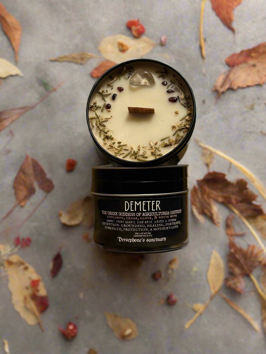 The Demeter Candle embodies the essence of warmth, earthiness, and nurturing energy, inspired by the ancient Greek goddess of the harvest.