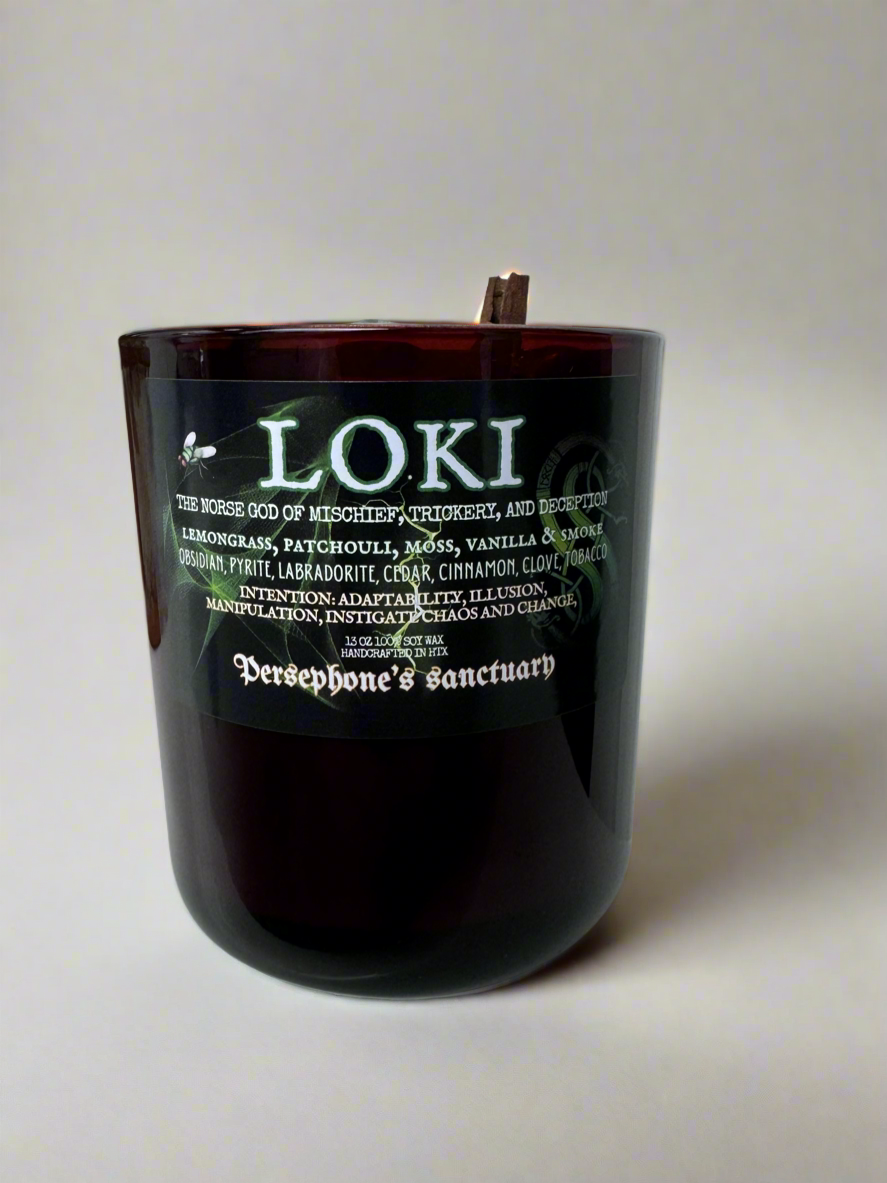 The Hades candle is hand crafted in small batches using 100% organic soy wax and FSC certified crackling wooden wicks. This candle is intentionally adorned to honor The God of the Underworld, but you do not have to work with deities in order to enjoy this Eco luxe relaxing scented candle.