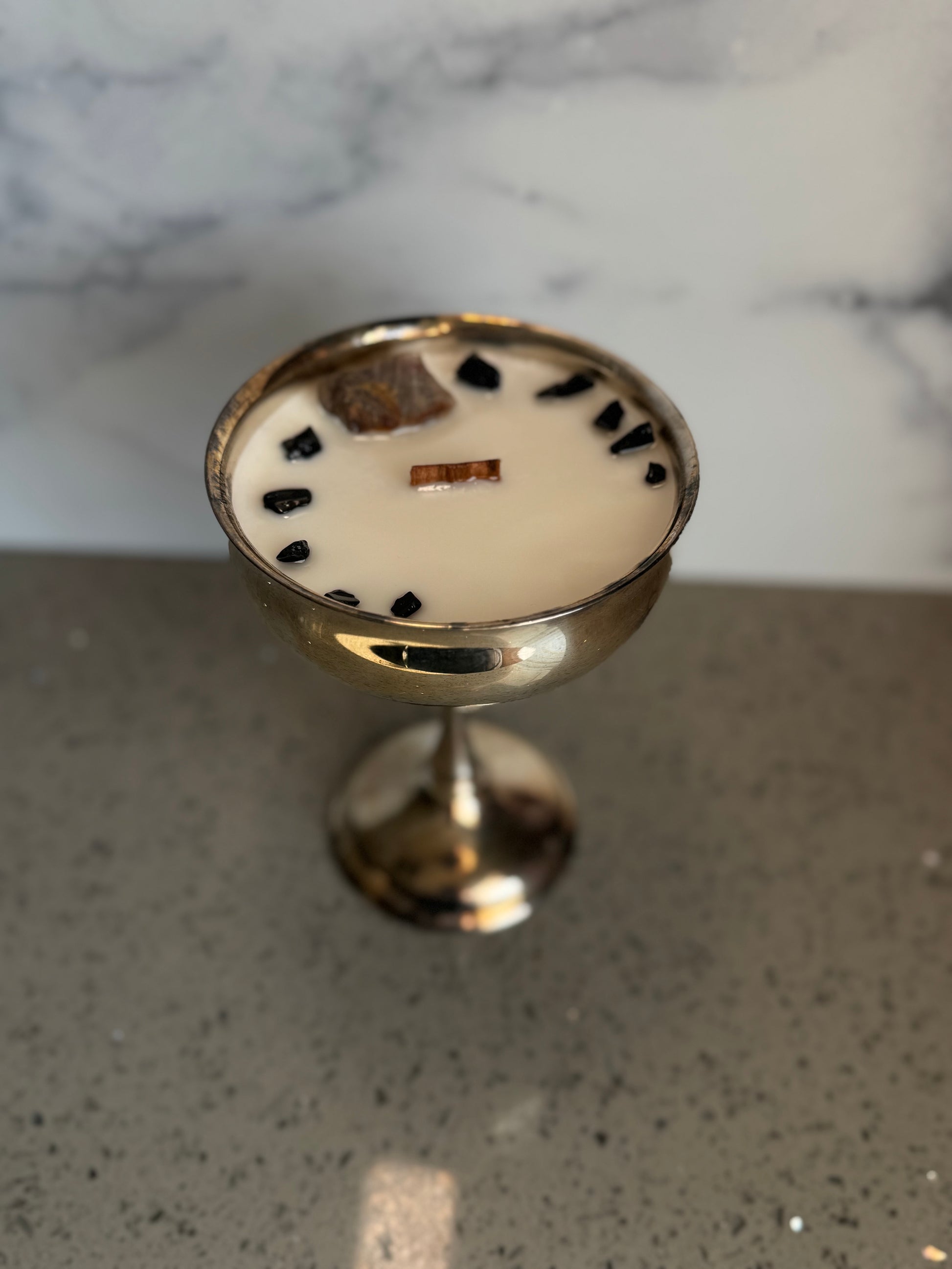 Silver Plated Champagne Glass Candle — The Lilith Blend | Grounding & Psychic Protection